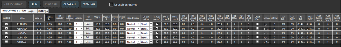 Enabled – enables or disables trading on a selected instrument.