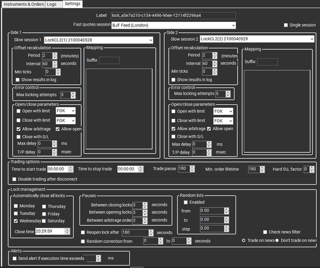 Max locking attempts X – maximum number of attempts to open a lock position. If it fails to open it after all the attempts, remaining position will be closed and trading disabled.