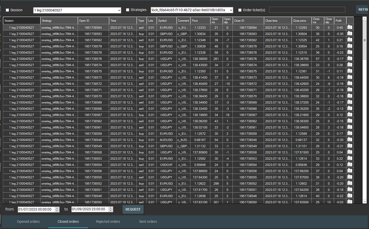 Search by order status, period, session, strategy or ticket allows to easily find the necessary information for review and analysis.