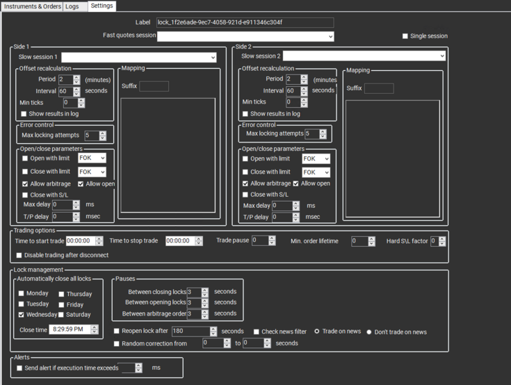 Max locking attempts X – maximum number of attempts to open a lock position. If it fails to open it after all the attempts, remaining position will be closed and trading disabled.